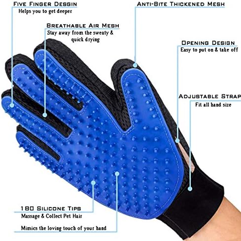 【Easy to Breathe】:The back of the glove has a soft mesh design. Make your hands more comfortable. You can get 2 blue pet grooming gloves (1 left-hand and 1 right-hand).