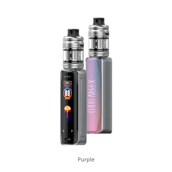 The SMOK X-Priv Solo is a Sub-ohm vaping device in a compact size. It features a 80W output and has a large dual display touch screen that provided information from your puff count to wattage control. The XPriv comes with the TF-D Top filling Subtank that holds up to 3.5mL of E-Juice. Powered by a single external 18650 battery (Not Included), the device can be charged by Type-C cable or by an external charger.
